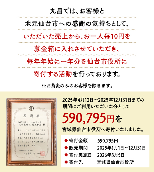 丸昌は2012年から安く楽しめる酒場「せんべろ」として仙台駅前でご愛顧頂いておりましたが、2022年12月の火災により閉店しておりました。たくさんの復活を望む声をいただき、2025年4月12日以前と同じ場所に店を再建することが出来ました。応援して頂いた方々、御支え頂いた方々に心から感謝申し上げます。